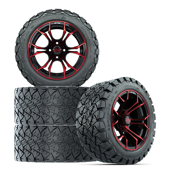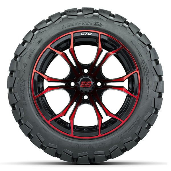14″ Spyder Red/Black Golf Cart Wheels and 22×10-14 GTW Timberwolf Tires – Set of 4
