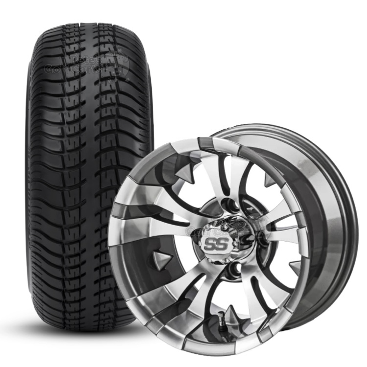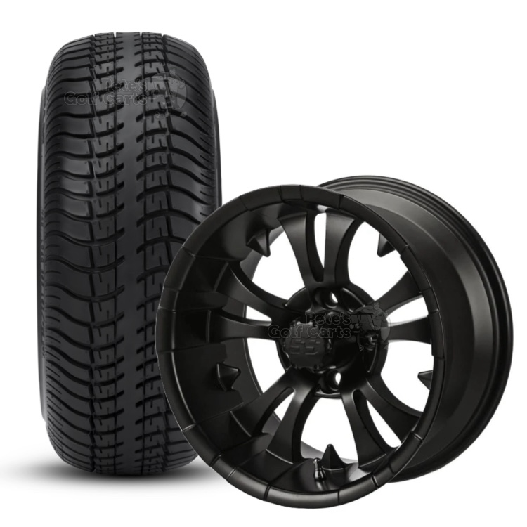 The most popular wheel in the golf cart industry, the 14″ Vampire, meets the 205/30-14 street and turf golf cart tire for a perfect setup! You can select your wheel that will come professionally mounted on a brand new set of 205/30-14 DOT Street and Turf Safe Tire.