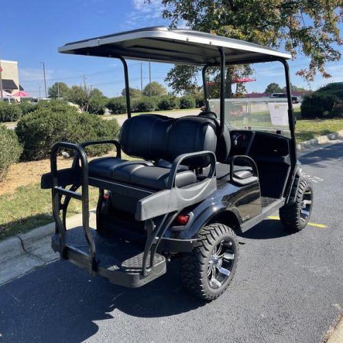 ConditionNew Stock Number2313 VinEZGSKBCPJN3537265 Vehicle TypeGolf Cart CategoryBattery Size: 2.0 ColorBlack Fuel TypeElectric INFO The easiest golf cart ownership experience. Period.. This E-Z-GO S4 elite comes with a ZERO maintenance lithium battery. Stop in and take this cart for a test drive to see what the E-Z-GO name is all about. Features – LED headlights, tail lights, & turn signals – Extended top to cover the front & rear passengers – Fold down rear seat with trunk – Zero maintenance lithium battery – 14” Wheels with all terrain tires – Folding windshield – Premium Seats Warranty Information – 2 Year vehicle warranty – Lifetime frame warranty – 8 Year battery warranty PHOTOS VIDEOS SPECIFICATIONS LocationGarner ConditionNew Stock Number2313 Year2022 MakeE-Z-GO ModelExpress™ S4 ELiTE™ Lithium Black Vehicle TypeGolf Cart CategoryBattery Size: 2.0 VINEZGSKBCPJN3537265 MANUFACTURER INFO Motor Motor Type56 Volt DC Motor Power11.7 hp (8.7 kW) Peak Motor ControllerSpeed: 235 Amp AC Air CleanerReplaceable Dry Cartridge LubricationPressurized Oil System Oil FilterSpin-On Cooling SystemAir Cooled Performance Top SpeedLevel Ground: 19 mph (31 kph) max Electric Electrical56 Volt Battery BatteryELiTE 2.0, 56V Lithium Battery Charger TypeELiTE Light World Charger 120/230 VAC, 10′ DC Cord Drivetrain DrivetrainMotor Shaft Direct Drive TransmissionDifferential with Helical Gears GearsSelection: Dash Mounted Forward-Neutral-Reverse Axle Capacity, RearRatio: 16.99:1 (Forward) SteeringSelf-Compensating Rack and Pinion Chassis ChassisBody & Finish: Injection Molded TPO Frame TypeWelded steel with E-coat & DuraShield powder coat Suspension SuspensionLeaf Springs with Hydraulic Shock Absorbers Brakes Brake System TypeService: Rear Wheel Mechanical Self-Adjusting Drum Parking BrakeSelf-Compensating, Single Point Engagement Wheels & Tires Front WheelTrack: 38.5 in (98 cm) Rear WheelTrack: 38.5 in (98 cm) Front TireMT Paramount, 23×10-14, Radial, SPDR Alloy Wheels Rear TireMT Paramount, 23×10-14, Radial, SPDR Alloy Wheels Dimensions DimensionsOutside Clearence Circle: 22 ft (6.7 m) Overall Length115.6 in (294 cm) Overall Width49.5 in (124 cm) Overall HeightW/o roof: 53.5 in (136 cm) | w/ roof: 83 in (211 cm) Wheelbase67 in (170 cm) Ground Clearance@ Differential: 5.75 in (14.5 cm) Turning Radius11.0 ft (3.4 m) Capacities Fuel CapacityTank: 5.96 Gallon (22.6 L) Seating Capacity4-Passenger Cargo Capacity800 lb (360 kg) Weights Dry Weight943 lb (428 kg) (without batteries) Curb Weight1018 lb (462 kg) Color ColorsBlack Color OptionAvailable Seat: Black, Grey on Black, White on Beige | Premium Seat: Black, Mushroom, Grey