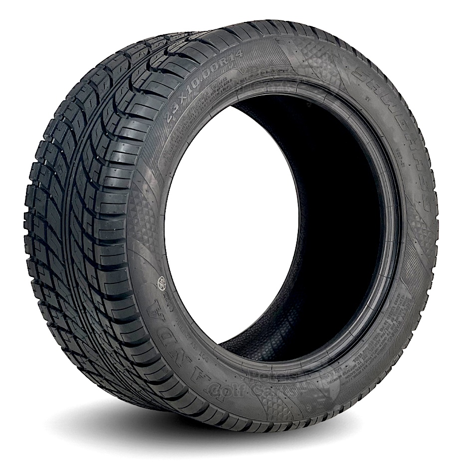 Steel Belted Radial construction makes this tire an EXCELLENT choice for higher speed golf carts and LSVs. This construction means a smoother, more consistent ride, no matter what speed your cart takes you. Designed with a directional tread pattern for the street while also being easy on turf. Mounts on a 14″ rim. Don’t hesitate to purchase the best golf cart tire money can buy, you won’t regret it!