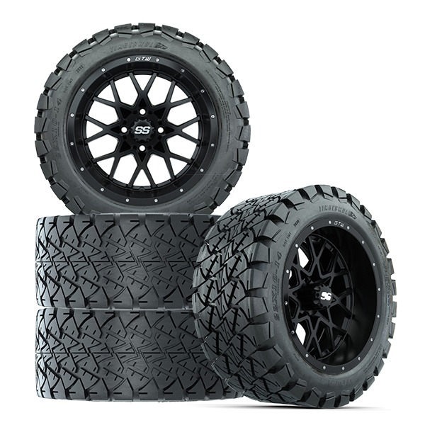 Be the first to review “Vortex Matte Black Golf Cart 14″ Wheels and 22×10-14 GTW Timberwolf Tires – Set of 4”
