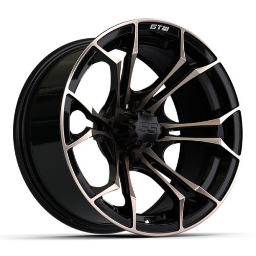 14″ Spyder Bronze/Matte Black Golf Cart Wheels and 22×10-14 GTW Timberwolf Tires – Set of 4